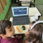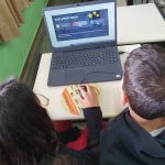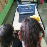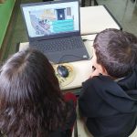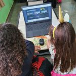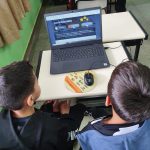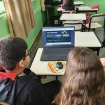 Em duplas, os alunos foram apresentados a uma das Ferramentas de Inovações Pedagógicas disponíveis no site da Arteris: os Vídeos Interativos, e em diversas situações puderam colocar em prova o que aprenderam e ver as consequências de quando as regras de Trânsito não são respeitadas.