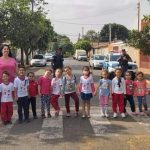 Recebemos a visita da guarda municipal para orientar nossos alunos como atravessar a faixa de pedestre com segurança. Ele irá passar algumas instruções e em seguida iremos atravessar a rua olhando para os dois lados, sob o comando do guarda. Após a travessia iremos confeccionamos semáforo de pedestre, podendo jogar depois com familiares, o jogo funciona assim, quem fica com o semáforo do pedestre cobre um dos visores, mostrando qual ação o pedestre irá realizar, se fica esperando parado ou se atravessa a rua.