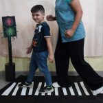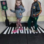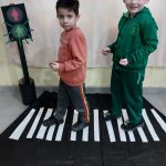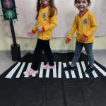 Após a conversa sobre o tema, foi proposto aos alunos brincarem simulando a travessia na faixa de pedestre no protótipo da rua com semáforo para aprender atravessar a rua com segurança.