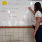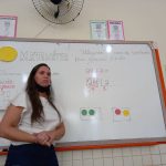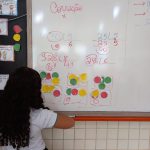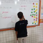 Como estratégia a professora utilizou o semáforo da matemática onde às crianças conseguiam ir agrupando as cores do semáforo e calculando o algoritmo desejado.