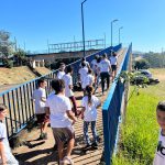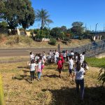 Seguindo os conhecimentos adquiridos sobre o trânsito, desta vez os alunos foram levados até a passarela onde muitos não conheciam, para entender sobre a importância da existência da mesma, para pedestres não correrem perigo ao atravessar em vias movimentadas.