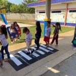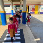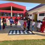 Iniciamos nossa roda de conversa sobre o trânsito e como atravessar a rua com segurança utilizando a faixa de pedestre, ela garante a proteção de quem atravessa evitando acidentes, e falei também que a faixa de pedestre mantém o trânsito organizado. Depois dessa conversa levei os alunos para o pátio onde na prática fizemos uma simulação de um trânsito com carrinhos de papelão, semáforo e faixa de pedestre. Separei a turma em dois grupos sendo que um grupo seria os pedestres atravessando a faixa e o outro grupo seria os carros trafegando obedecendo o semáforo. Percebi que as crianças ficaram bem interessadas, falei também que ao atravessar a rua devemos parar e olhar para os dois lados e sempre atravessar na faixa de pedestre na companhia de um adulto. Em seguida confeccionamos um carrinho de papel colado no palito de picolé simulando um trânsito para as crianças levarem para casa compartilhando com a família a conscientização em atravessar a faixa de pedestre com segurança.