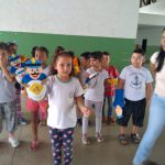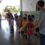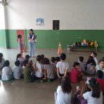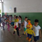 Depois fomos no pátio da escola e os alunos apresentaram um teatro, juntamente com a turma de Revista em quadrinhos do Zé Quest.