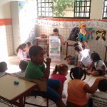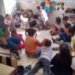 Juntos os alunos puderam ouvir e conversar sobre o novo aprendizado fazendo muitos comparativos a nossa cidade.