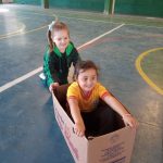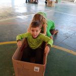 Para finalizar, os alunos participaram de brincadeiras lúdicas onde os alunos utilizaram carrinhos estruturados e os não estruturados, neste caso, caixa de papelão que os alunos trouxeram de casa ou que tinha no espaço escolar.