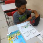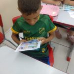Aluno fazendo a leitura da revista em quadrinhos