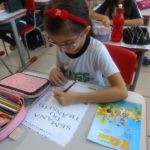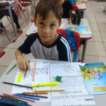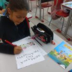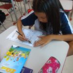 Aluna fazendo atividades sobre o trânsito