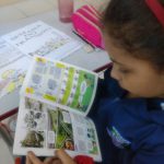 Aluna lendo a revista em quadrinhos Zé Quest
