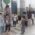 As crianças fizeram um teatro cujo objetivo é ensinar a importância de respeitar as sinalizações dos semáforos e das placas, e o perigo que pode ocorrer caso estas regras fossem violadas. Os alunos interpretaram a história de três irmãos que iam pela primeira vez à casa da vovó, neste percurso perceberam que havia um semáforo devido o grande fluxo de veículos que por ali passava, ao se depararem com tamanha preocupação, os três irmãos decidem perguntar um ao outro sobre o que cada um sabia sobre este assunto e o momento certo de atravessar a rua. O irmão mais novo diz que o momento de esperar é no vermelho, já o irmão mais velho explica que o vermelho serve para o carro parar e que eles devem atravessar quando estiver este sinal, já a irmã do meio, mais peralta, diz que não precisa esperar, basta estar no amarelo e correr para atravessar que não acontece nada, já que que este sinal significa atenção. Neste momento a irmã do meio sai correndo para provar que estava certa e o motorista do carro que pensava como ela também corre antes de fechar o sinal e os dois se chocam provocando um grande susto nos três irmãos. Eles saem ao encontro da irmã que está caída no chão e a ajudam, ao perceberem que foi só um susto, decidem conversar com ela sobre a importância de se respeitar as regras de trânsito, ela diz ter aprendido a lição e se compromete a voltar e perguntar para sua mãe sobre as plaquinhas de trânsito que ficam perto da casa da vovó e qual é o objetivo delas. A mamãe toda preocupada explica o significado das placas: “Dê a preferência”, “Proibido estacionar” e “Pare”.