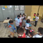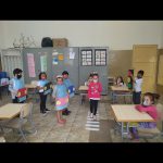 Após assistirem vídeos e imagens sobre o trânsito, montamos na sala algumas ruas e distribuímos os papéis, automóveis, pedestres, “semáforo”, sempre questionando o que deveríamos fazer para ter um trânsito seguro. Relembrar como se comportar diante do semáforo.