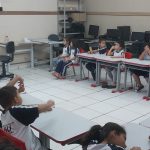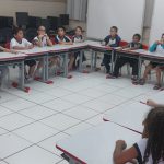 As atividades estão sendo trabalhadas em sala de aula, resgatando os conhecimentos prévios dos alunos e acrescentando novos conhecimentos. Eles se juntam para uma conversa na sala de vídeo da escola. Trocam relatos e experiências vividas relacionadas ao trânsito. Depois em sala de aula fazem atividades de aprendizagem para um trânsito mais seguro, aprendendo e levando para casa folhetos com as principais regras para um trânsito mais seguro.