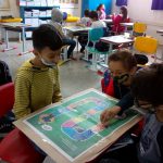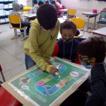A professora trouxe para a sala o jogo trilha do trânsito e os alunos puderam vivenciar o que aprenderam durante a semana e se divertiram muito.