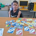 Os alunos do AEE, com orientação da professora, confeccionaram um UNO adaptado para orientar sobre o trânsito seguro. Utilizou do jogo, pois assim os alunos memorizam com mais facilidade e de forma lúdica. Assim, os alunos aprendem brincando sobre os cuidados e perigos no trânsito.