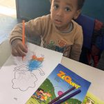 Para as crianças de 3º ano,4º ano e 5º ano foi realizado a atividade COLORIR COM REFERÊNCIA – (Personagens da história- LAÍS – TEO – ZÉ QUEST – GIL e BELA – colorir o desenho com uma imagem de referência: Visualize a imagem de referência ao lado do desenho e utilize as cores e detalhes presentes na imagem como base para a sua pintura). Cada criança realizou o seu. Foi exposto na sala para apreciação de todos.