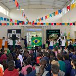 Os alunos realizaram a apresentação de uma coreografia elaborada a partir de uma música relacionada ao tema do meio ambiente. Essa atividade teve como objetivo promover a sensibilização e o engajamento dos estudantes em questões ambientais, utilizando a expressão corporal como ferramenta de comunicação e conscientização. Através da coreografia, os alunos puderam demonstrar de forma criativa e participativa a importância da preservação do meio ambiente, estimulando o trabalho em equipe, a coordenação motora e a compreensão dos valores ligados à sustentabilidade. A iniciativa reforça o compromisso da instituição com a educação ambiental, promovendo ações que incentivem a reflexão e o envolvimento ativo dos estudantes na preservação do planeta.