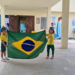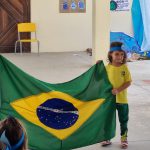 Na manhã de hoje a professora Luciane do pré I fez uma apresentação com seus alunos para todas as turmas.