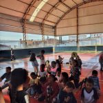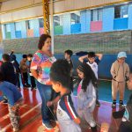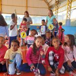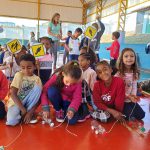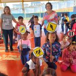 Logo em seguida foram com seus alunos a quadra da escola para várias atividades relativas ao trânsito apresentando assim as cores do semáforo. Em seguida tiveram apresentações das placas do trânsito e concretizaram brincando com carrinhos .