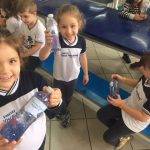 As crianças trouxeram para sala de aula uma garrafa de água que se transformaria em um aquário. Em roda, discutiu-se questões de reaproveitamento de materiais e economia de água.