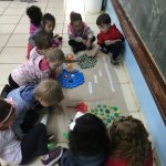 Avaliação: Dividi as crianças em grupos, cada grupo ficou responsável para fazer uma parte da paisagem, gostaram de brincar com as tampinhas, de separarem pelas cores e tamanhos. Foi uma atividade diferente para eles.