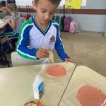 Iniciamos as atividade com uma roda da conversa sobre elementos da natureza que soltam tinta, foi proposto que realizassem uma receita com tinta natural, apresentamos os recursos e orientamos durante realização das misturas e em seguida disponibizamos o caderno de desenho para a realização de uma obra de arte!