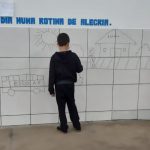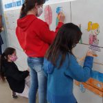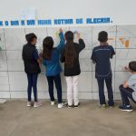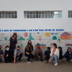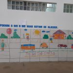 Os alunos do 5º ano criaram um painel com desenhos referente ao tema utilizando tinta guache para a pintura.