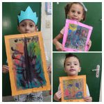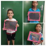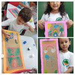 Os alunos do 1° ano, confeccionaram pinturas com tinta guache e partes de papelão que seriam descartados. Após roda de conversa sobre o uso do papelão e seu descarte, lembrando sempre sobre a importância da preservação do meio Ambiente.