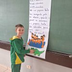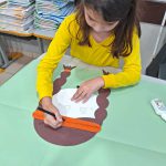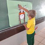 Para finalizar encenamos a música dos indiozinhos e montamos o cartaz com a letra e compondo os personagens para ficar na sala.