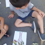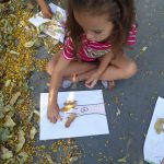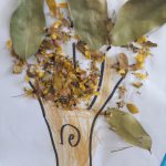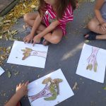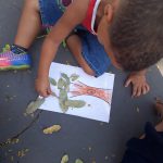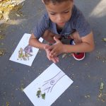 Logo após, orientou os pequenos para reproduzirem através de uma pintura o tronco da árvore, e assim, deram continuidade na atividade colando as folhas secas da árvores que estavam no chão.