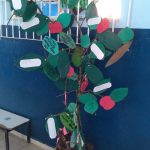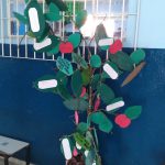 Após trabalho disparador sobre o tema, confeccionamos folhas de papelão(de caixas usadas na escola), pintamos com tinta guache de diversos tons de verde. Após secagem, os alunos escreveram palavras e frases relacionados a temática, então compomos nossa Árvore da Consciência, em um galho seco juntamente com mais duas turmas da escola.