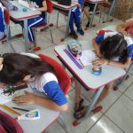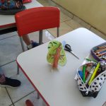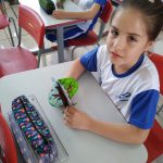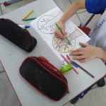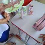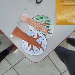 Nas aulas de arte das turmas de 2° e 3° ano conversamos sobre a data e sobre as características das estações do ano. Cada aluno recebeu quatro modelos de árvores iguais para colorir, cada uma com as características de uma estação do ano. Depois cortaram, dobraram e colaram as quatro árvores formando uma só que fica um pé.
