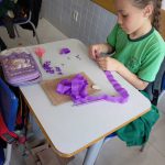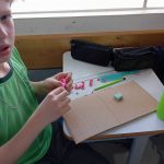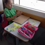Na aula de Arte realizada com a turma do 3º ano do Ensino Fundamental, os alunos tiveram a oportunidade de observar e elaborar uma obra de arte sobre a natureza por meio da confecção de formas inspiradas no ipê.