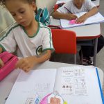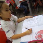 Durante a aula, foi explanado sobre a importância da reciclagem na proteção ao Meio Ambiente. Foi lido um texto sobre o assunto e em seguida os alunos fizeram atividades de recorte e pintura: Livrinho das cores da Reciclagem.