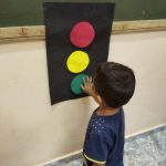 Uma atividade que teve como principal objetivo aprender quais são as cores do semáforo e também quais são os significados de cada cor. Todos montaram juntos um painel representando um semáforo.