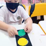 Nossas crianças, aprendendo sobre as cores do semáforo e eles mesmos montando. O vermelho indica que não podemos passar e devemos parar, o amarelo indica que precisamos esperar e o verde significa que já podemos seguir. Se utilizarmos as cores do semáforo e o que elas representam no contexto de um ataque de raiva ou birra, as crianças podem aprender a administrar suas emoções como se fosse um jogo.