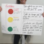 Foi trabalhado em sala de aula, confecção de cartazes conscientizando a importância de respeitar os sinais, principalmente o semáforo, que é um sinal novo em nossa cidade e que muitos ainda não se conscientizaram de sua necessidade por causa do crescimento do nosso município.
