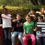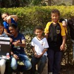 Maiores cuidando dos menores. Então os alunos fizeram uma simulação de como seria na rodovia.