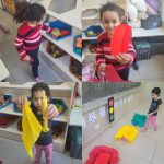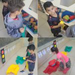Nesta atividade, organizamos três cestos com as cores do semáforo (Vermelho, Amarelo, Verde). As crianças foram selecionados por turmas, e ao comando da professora, cada aluno procurava pela sala um objeto da cor estipulada para colocar no cesto da cor correspondente.