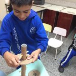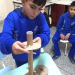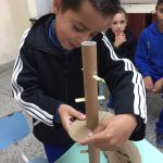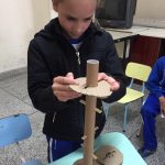 Atividade de encaixe onde o aluno deve ir encaixando a peça entre os palitos para chegar até a base. Nela se trabalha a coordenação motora fina, coordenação óculo-manual, raciocínio e percepção visual, além de trabalhar a reciclagem dos materiais como o papelão e os palitos, conscientizando os alunos sobre a preservação do meio ambiente e a reutilização de materiais.