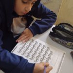 Os alunos receberam uma atividade com várias figuras de carros sem placas, e tiveram que alternar a numeração 1234, de forma que não poderiam repetir esses algarismos na mesma ordem, onde trabalhamos o conceito de classes e ordens com o projeto Trânsito.