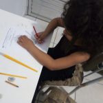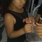 Foi solicitado que a criança estourasse as bolhas, sentisse sua textura e observasse seu formato. Depois deveria colar os pedaços do plástico sobre a desenho da espiga de milho e pintar com guache.