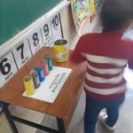 Os alunos colocando o lixo na lixeira correta para a reciclagem correta do lixo.