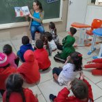 Ao longo de algumas semanas foi trabalhado o tema “Dengue”. Dentre outras propostas realizadas, teve-se como apoio ao trabalho um material que incluía um livro de atividades. As professoras inicialmente, apresentaram o material aos alunos e fizeram a leitura inicial do livro, em seguida, as crianças puderam manusear e folhear. Posteriormente ao longo dos dias, foram realizadas as atividades do livro, que consistem em propostas de identificação de possíveis focos de proliferação do mosquito e como evitar, como ocorre a transmissão, quais os sintomas da doença, entre outros. As crianças gostaram bastante do material e as atividades foram realizadas com entusiasmo, as crianças demonstraram adquirir conhecimentos importantes sobre o combate ao mosquito, sendo agentes multiplicadores e levando as informações adquiridas às suas famílias.
