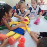 Atividade desenvolvida em sala com a utilização do Fantoche e com as Histórias em Quadrinhos envolvendo a sala toda do Infantil I e II da professora Walquiria, tendo como objetivo o manuseio e interação com o fantoche e o conhecimento da Historio do HQ Pedras no caminho.