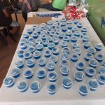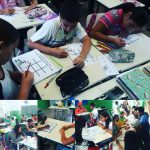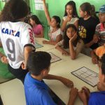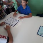 Os alunos construíram o jogo das gotinhas e com eles participaram de um torneio, na escola, onde usaram as regras e um produto confeccionado por eles mesmos. As regras do jogo eram jogar um de cada vez e conseguir fechar três casas na horizontal, na vertical ou na diagonal.