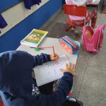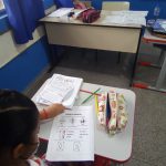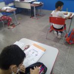No segundo dia foi dado os alunos atividades impressas sobre o trânsito, como as cores do semáforo, quando deve parar, ter atenção e passar, na atividade também teve o semáforo de pedestre. Nessas atividades também tinham algumas placas.