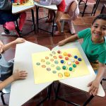 COM MUITA CRIATIVIDADE, AS CRIANÇAS CONFECCIONARAM JOGOS FEITOS POR TAMPINHAS DE GARRAFA PET E PAPEL COLORIDO.