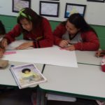 Durante o trabalho utilizamos o momento da conversa, retomamos a caminhada pelo bairro, o trabalho em grupo, leitura compartilhada e registros coletivos na lousa para guiar o que estávamos descobrindo e estudando.