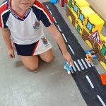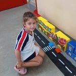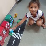 Depois da conversa, foi  realizada a brincadeira, as crianças brincaram na maquete, atravessando os bonecos na faixa de pedestres.