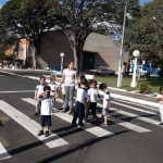 Iniciamos a atividade em sala de aula, com a orientação sobre como atravessar a rua com segurança. Os alunos ficaram encantados com a demonstração teórica que se finalizou logo após nos entornos da escola com a travessia da faixa de pedestre.