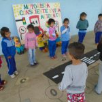 A professora Eriana do Pré I, apresentou a música atravessar a rua, trabalhou em sala de aula os cuidados que devemos ter ao atravessar a rua, olhar sempre o sinal, prestar atenção ao atravessar a rua.